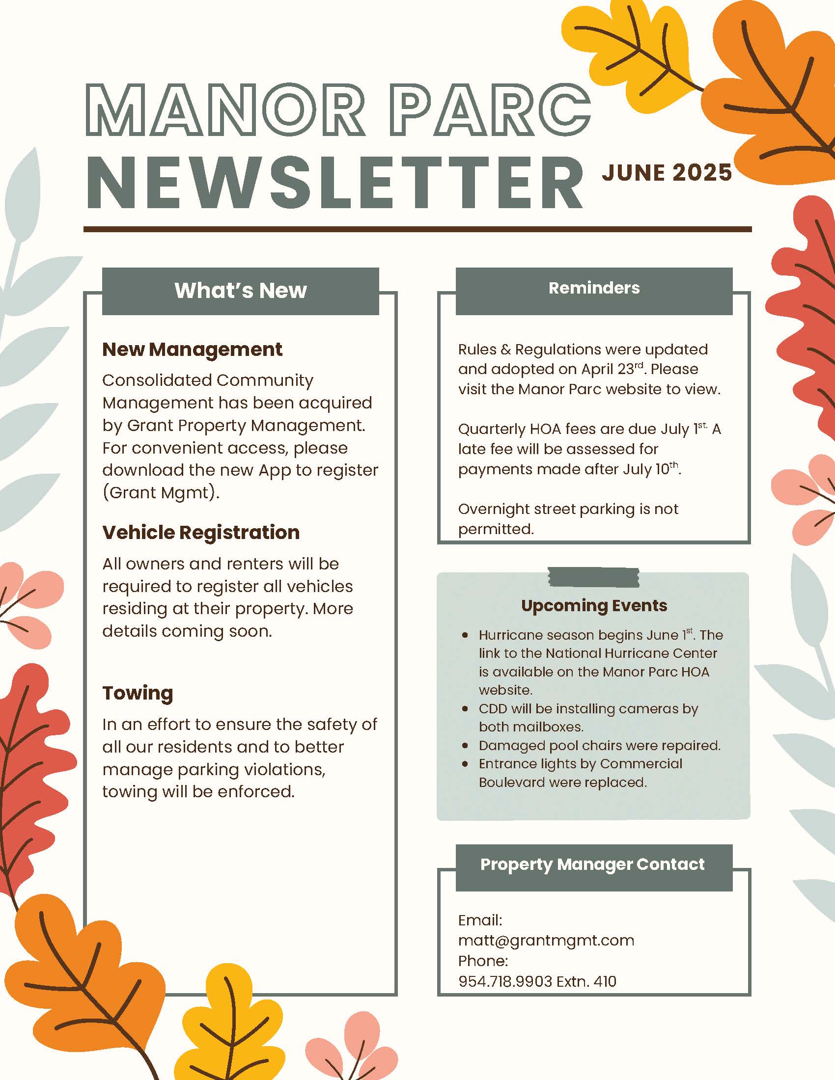 Manor Parc Newsletter June 2025