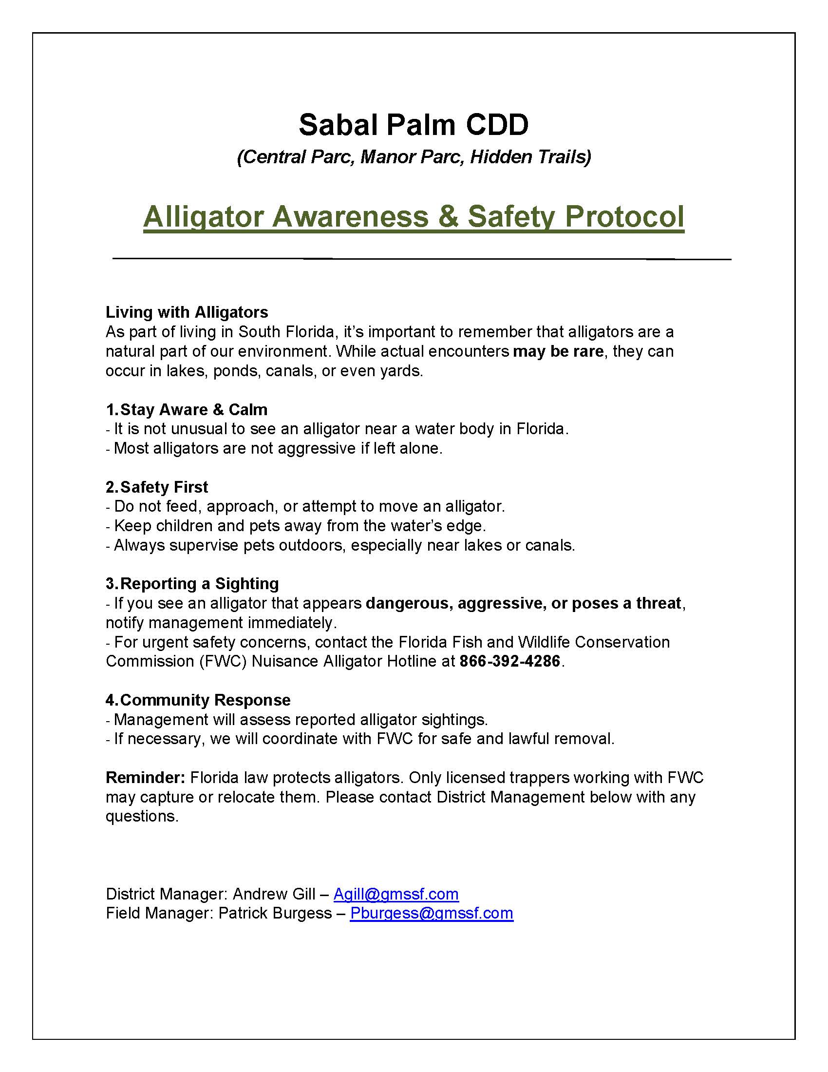 Alligator Awareness & Safety Protocol